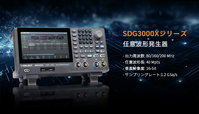 2025 年 9月 25 日 — SIGLENT は次世代の SDG3000X シリーズ任意波形発生器を発売しました。高忠実度と高精度の信号生成を実現するよう設計された SDG3000X シリーズは、最大 200MHz の出力周波数、チャネルあたり 40Mpts の任意波形長、16 ビットの垂直分解能、および最大 1.2GSa/s のサンプリングレートを提供します。7 インチの静電容量式タッチスクリーン、直感的なインターフェース、および堅牢な信号生成能力を備えた SDG3000X は、通信、半導体、新エネルギー技術、学術研究などの用途に最適です。